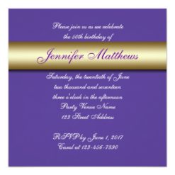 Purple Gold 50th Birthday Party Invitation