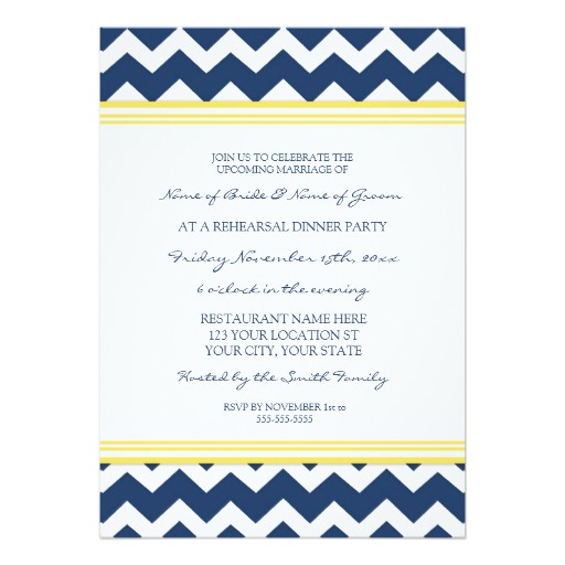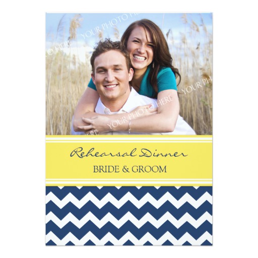 Yellow Blue Chevron Photo Rehearsal Dinner Party Invitation Card